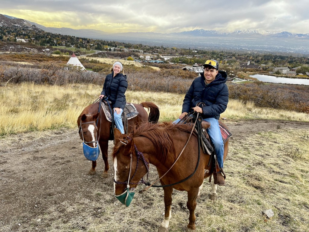 In November, I surprised my boyfriend with a weekend trip to Salt Lake City, Utah, only needing to take one personal day from school. We saw his favorite country music artist on his final tour, went horseback riding in the mountains, visited Antelope Island to see the salt flats and bison, and learned about the Mormon pioneers’ westward expansion. It was a mix of adventure, music, and history.